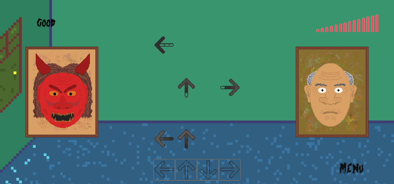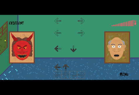 Game made for Ludum Dare 33, developed in 48 hours all alone. Every asset (fonts excluded) was made in 48 hours by me. The Jam theme was “You are the Monster”. The game is a Dance Dance Revolution clone in wich you must scare a grumpy man, that sent you away on Halloween night. The inspiration was the scare competition in Monster University. The game was made using Unity3D as a game developing framework and aseprite for the pixel art sprites.